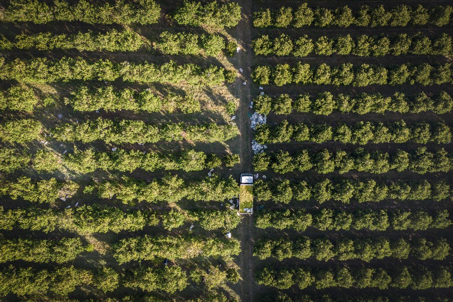 這是2023年5月24日在南非西北省拍攝的一處柑橘農(nóng)場(chǎng)(無人機(jī)照片)。(新華社發(fā),希拉茲·穆罕默德攝)