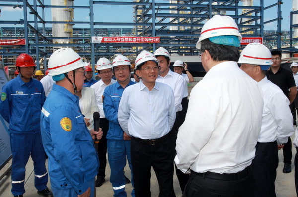 29日上午,孫金龍一行前往山東裕龍石化產(chǎn)業(yè)園,調(diào)研裕龍島煉化一體化項目。該項目位于煙臺市所轄龍口市,是山東省新舊動能轉(zhuǎn)換、現(xiàn)有地煉產(chǎn)能供給側(cè)改革升級的重點項目,規(guī)劃產(chǎn)能4000萬噸/年。孫金龍觀看了項目建設(shè)紀實片并參觀了裕龍石化展廳,聽取了項目有關(guān)介紹,隨后前往3號島和2號島實地查看一期建設(shè)情況,現(xiàn)場考察項目實施、設(shè)備工藝、環(huán)境安全等情況,仔細詢問污染物排放情況和廢水、廢氣及危險廢物處置措施。他強調(diào),推動發(fā)展方式綠色低碳轉(zhuǎn)型,產(chǎn)業(yè)綠色轉(zhuǎn)型升級是重點和關(guān)鍵。要健全生態(tài)環(huán)境法規(guī)政策標準,強化生態(tài)環(huán)境準入管理,加快促進產(chǎn)業(yè)結(jié)構(gòu)調(diào)整優(yōu)化,通過高水平保護不斷塑造發(fā)展的新動能、新優(yōu)勢。要指導支持企業(yè)開展綠色低碳技術(shù)改造,嚴格落實環(huán)評審批要求和相關(guān)環(huán)保標準措施,確保環(huán)保設(shè)施建設(shè)到位、規(guī)范運行和達標排放,切實做好環(huán)境風險防范處置工作。
