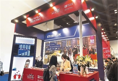 英國(guó)教育展區(qū)的相關(guān)負(fù)責(zé)人正在答疑。