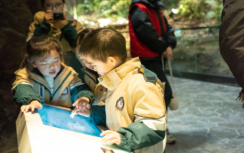 “媽媽,你看這棵樹上面也掛了牌子。”一大早,開化縣實(shí)驗(yàn)幼兒園的小朋友們來到古田山探索自然的秘密。小朋友與家長沿路而上,檵木、浙江大青、赤楊葉等植物被一一記錄在研學(xué)手冊上,有的小朋友還手持放大鏡觀察植物的脈絡(luò)紋理,將自己喜歡的樹葉記錄下來,剪出形狀。“今天很開心,我看到了喜歡的楊梅樹,還撿到了鵝卵石。”一個小朋友興奮地歡呼到。結(jié)束室外活動,孩子們與家長來到了錢江源國家公園科普館,近距離觀察野生動植物標(biāo)本,學(xué)習(xí)錢江源國家公園動植物相關(guān)知識。