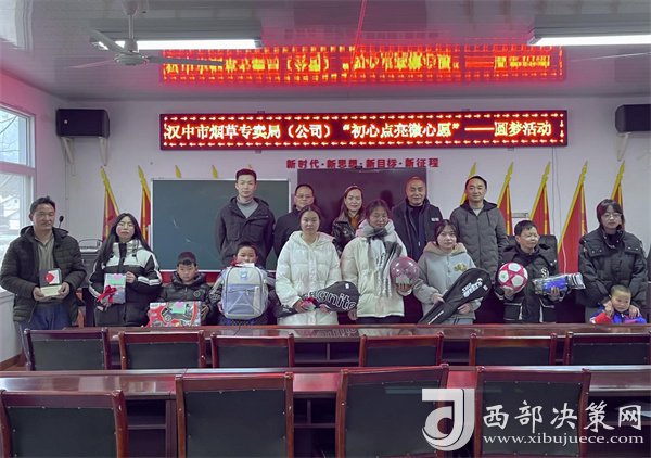 西部決策網(wǎng)訊 2月22日,漢中市煙草專賣局(公司)到定點(diǎn)幫扶村阜川鎮(zhèn)蒲家壩村,開展“初心點(diǎn)亮微心愿”——圓夢活動。來自蒲家壩村的11名青少年兒童在新學(xué)期開學(xué)前收到了他們期盼已久的禮物。