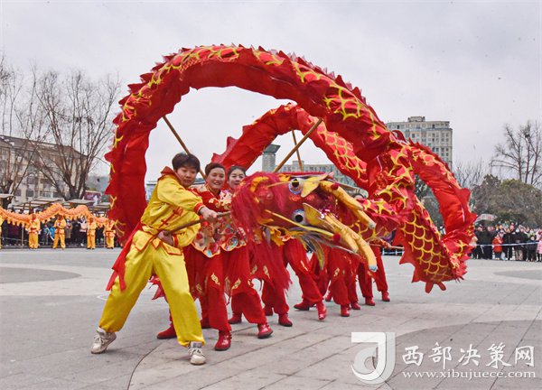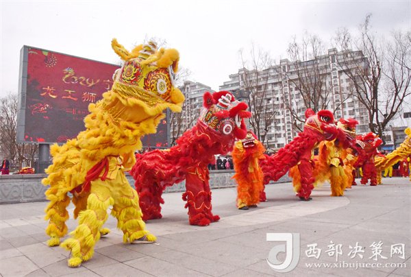 西部決策網(wǎng)訊  一條條“長龍”翻騰,一頭頭“雄獅”躍動,鑼鼓聲與喝彩聲交融,2月23日,寧強縣“羌風(fēng)漢韻過大年、龍騰虎躍鬧新春”龍王獅王爭霸賽在縣城人民廣場舉行。