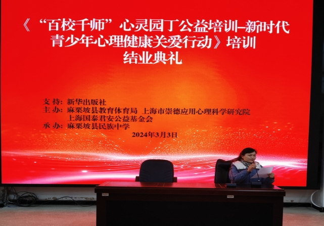 3月2日至3日,由滬文協(xié)作教學(xué)幫扶專家龔志珍同志牽線搭橋引進(jìn)的《“百校千師”心靈園丁公益培訓(xùn)——新時(shí)代青少年心理健康關(guān)愛(ài)》培訓(xùn)項(xiàng)目,在麻栗坡縣民族中學(xué)隆重舉行。