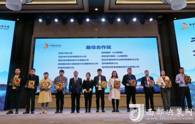 陳倉區(qū)文化和旅游局黨組書記、局長齊智雄推介陳倉區(qū)文化旅游資與會領(lǐng)導(dǎo)為“引客入寶”政策及“百萬游客進(jìn)陳倉”活動優(yōu)秀合作旅行商等頒獎。