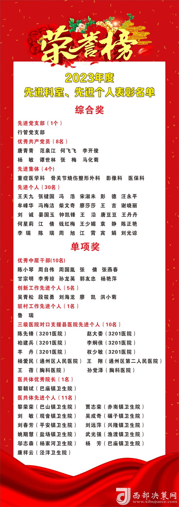 會議宣讀并表彰了2023年度醫(yī)院的先進(jìn)集體和先進(jìn)個人。