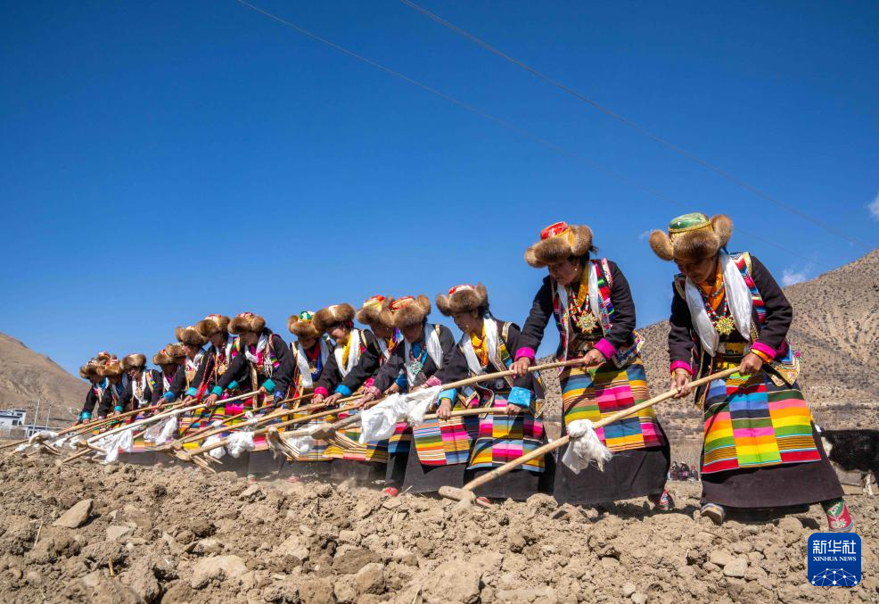 這是3月16日拍攝的西藏山南市瓊結(jié)縣加麻鄉(xiāng)加麻村的春耕儀式現(xiàn)場。新華社記者 旦增尼瑪曲珠 攝