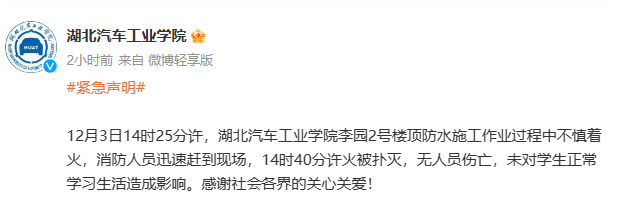 湖北汽車工業(yè)學院通報發(fā)生火災